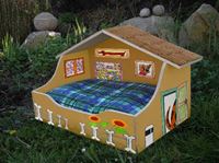 Pelíšky pro psy a kočky ARNY jsou druhou kategorií v naší nabídce celodřevěných pelíšků značky SkyWander. U tohoto modelu vycházíme nejen vstříc odborným chovatelům, kteří uvádějí, že některá plemena pejsků a koček preferují u pelí šků alespoň náznak přístřeší. Mají zde větší pocit jistoty, pohodlí a bezpečí, ale současně je doplňujeme elegantním vykrojením bočnic, spolu s čelním výřezem pro lepší příchod do pelíšku. Tento typ pelíšků se také, stejně jako předchozí typ, hojně využívá coby druhý doplňkový pelíšek, při odchovu štěňat a koťat. Jak je vidět na spodních fotografiích, výborně se také hodí pro originální omalování pelíšku v souladu s vaší fantazií... Kliknutím na políčko příslušenství nabízíme v dolní sekci různé vzory matrací nebo polštářů. Zde je cena pelíšku bez příslušenství, tedy bez matrace či polštáře. Varianty jsou zde pouze pro lepší představu, která se vám lépe hodí...